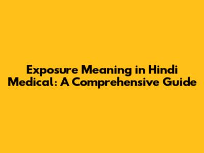 Exposure Meaning In Hindi Medical: A Comprehensive Guide