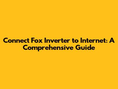 Fox Inverter Internet Connection: A Complete Guide