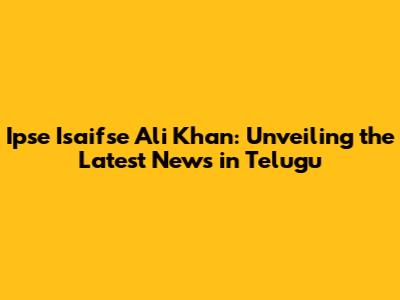 Ipse Isaifse Ali Khan: Latest Updates In Telugu