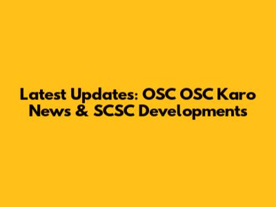 Latest Updates: OSC OSC Karo News & SCSC Developments
