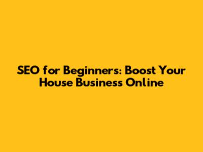 SEO For Beginners: Boost Your House Business Online